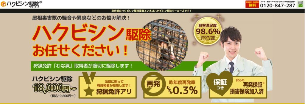 ↓ハクビシンのおすすめ業者5選はコチラ↓