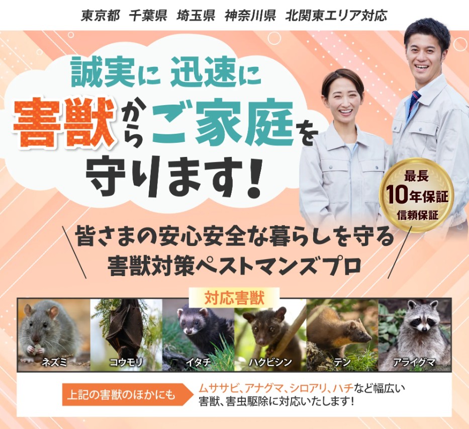 ペスコンproは東京都・埼玉県など関東圏中心に展開する地域密着駆除業者です。