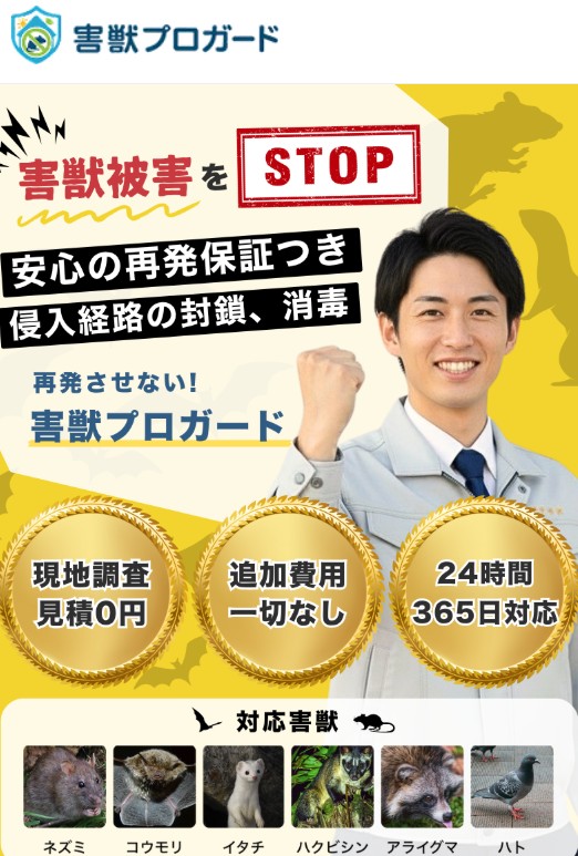 泉大津市のイタチ駆除業者③:害獣プロテック