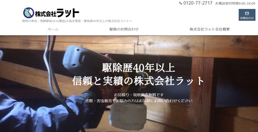 株式会社ラット は大阪・関西を中心に40年以上の実績を誇る害獣・害虫駆除の専門会社です。
