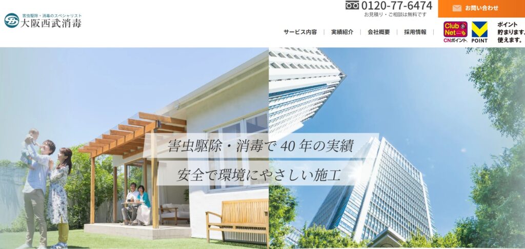 大阪西武消毒は害虫・害獣駆除で40年以上、累計100,000件以上の実績を持つ専門業者です。