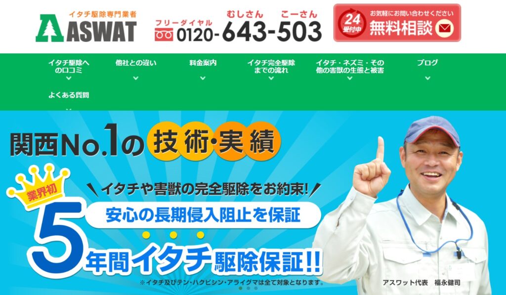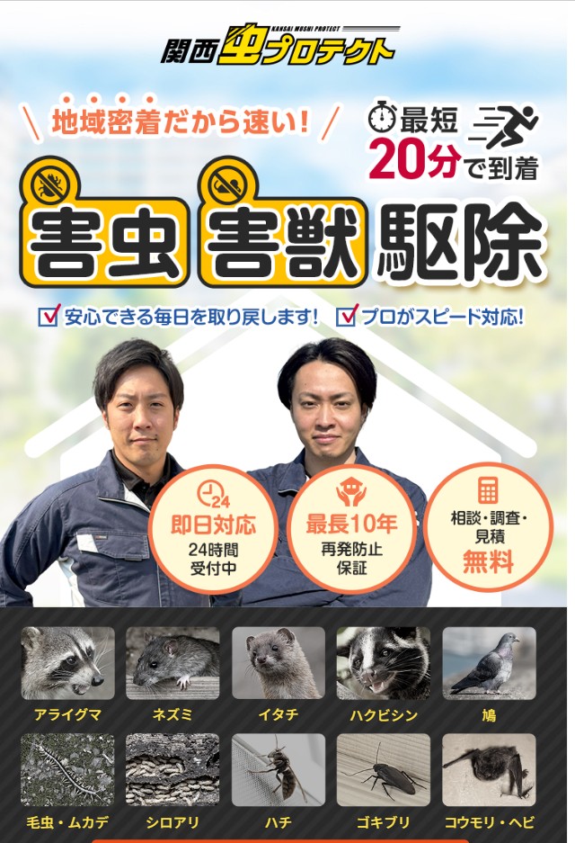 | 特徴 | 関西圏全域の害虫・害獣駆除に対応 |