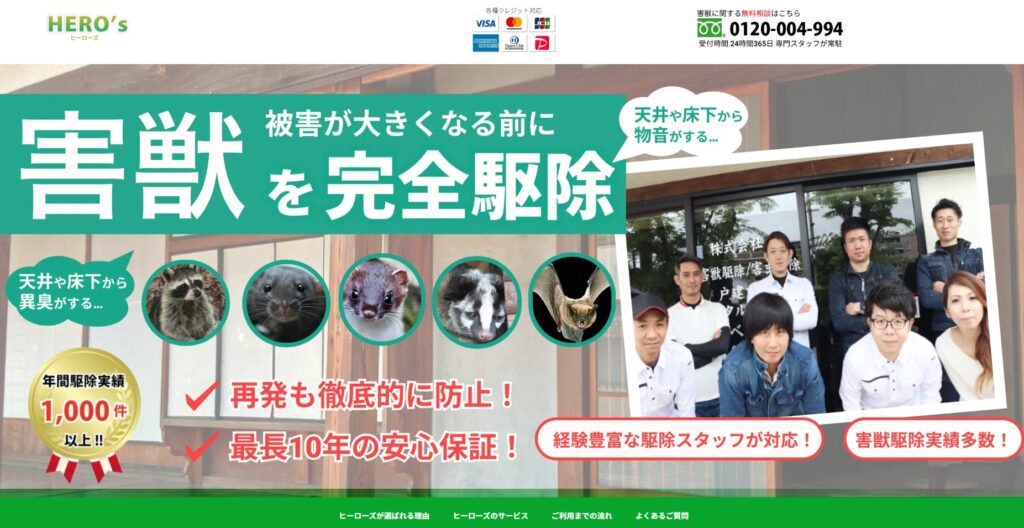 | 実績 | 年間駆除実績1,000件以上 |