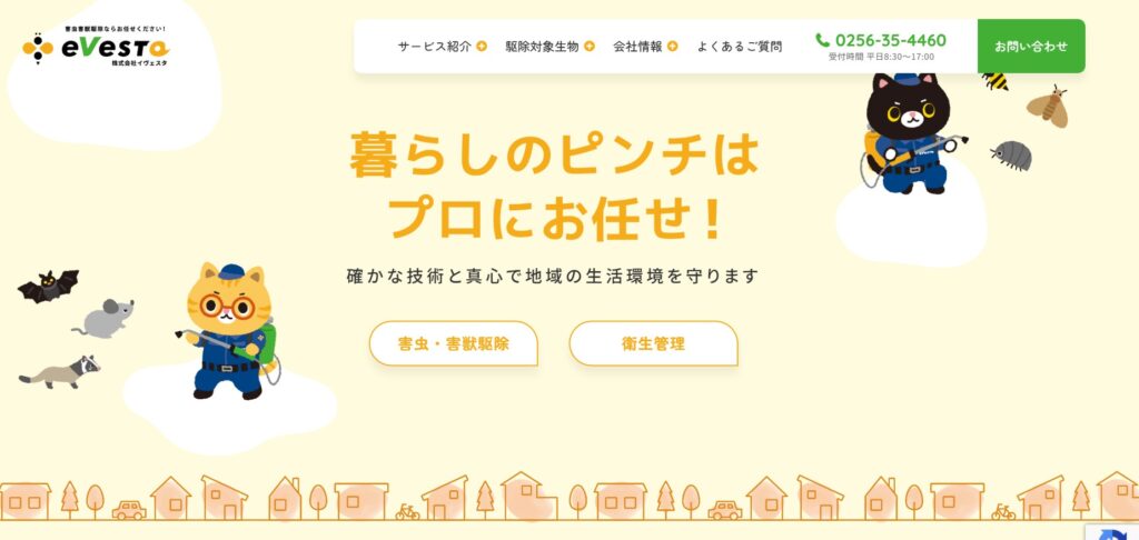 株式会社イヴェスタは、1977年創業の歴史ある害虫・害獣駆除サービスで、地域密着の丁寧な対応が強みです。